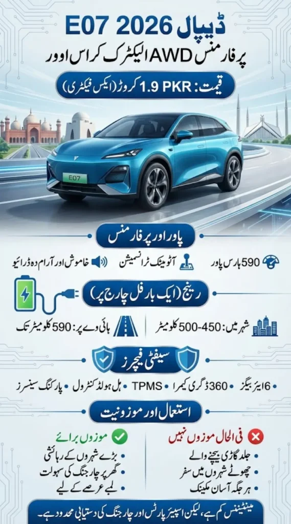Deepal E07 2026 is not a mass-market car—and it’s not pretending to be one. It’s for buyers who are ready for the electric future, tired of petrol prices, and want something bold, powerful, and modern on Pakistani roads. If that sounds like you, this EV deserves a serious look.