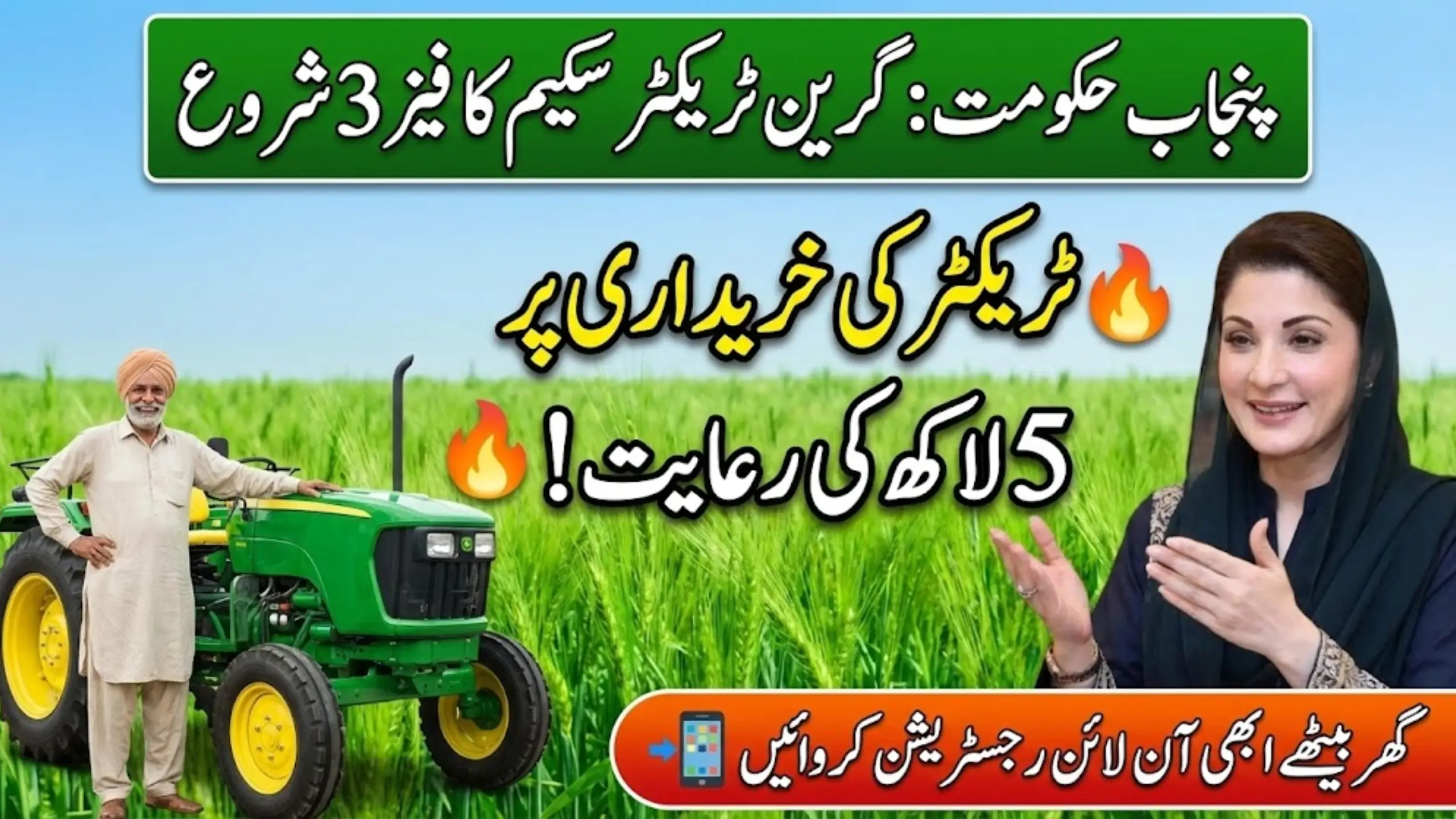 Punjab Green Tractor Scheme Phase 3 is a government program that allows farmers to get a tractor on installments with a PKR 5 lakh subsidy to support modern farming in Punjab.