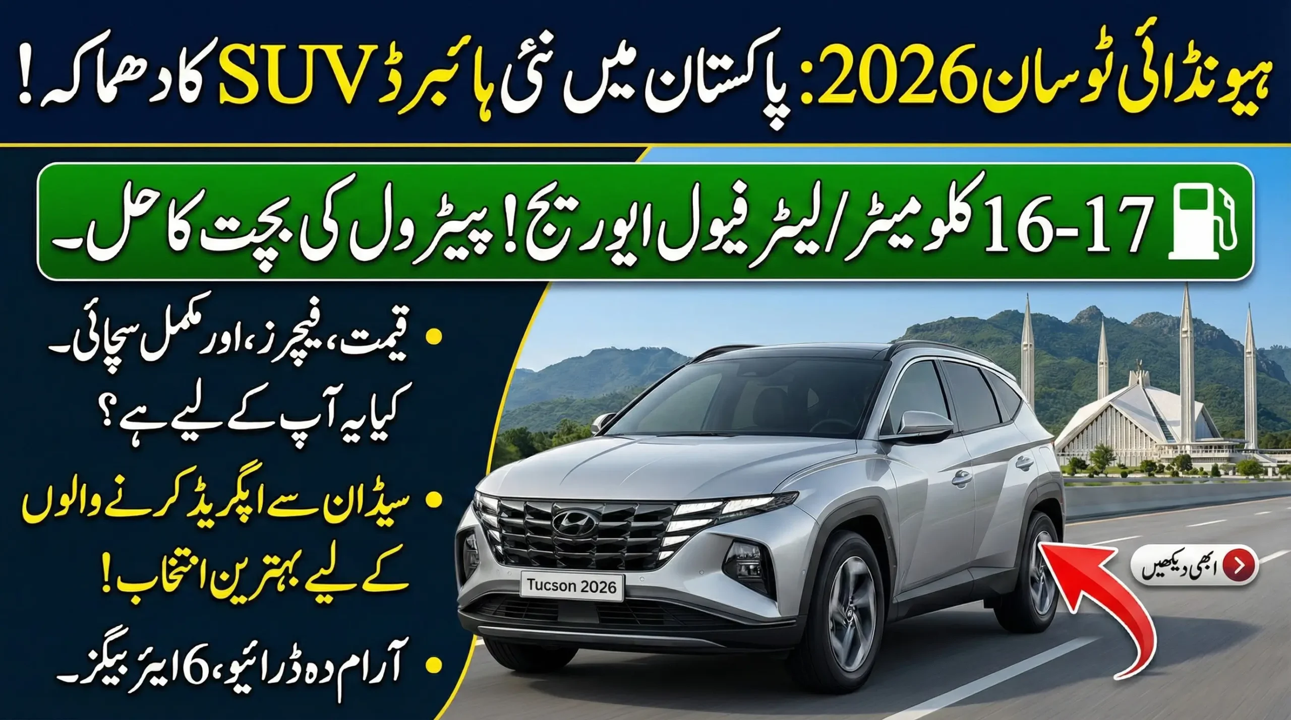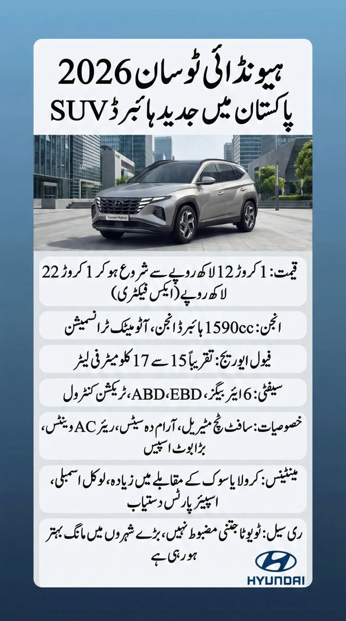 Yes, Hyundai Tucson 2026 hybrid is officially available in Pakistan with better fuel average and lower running cost compared to petrol SUVs.