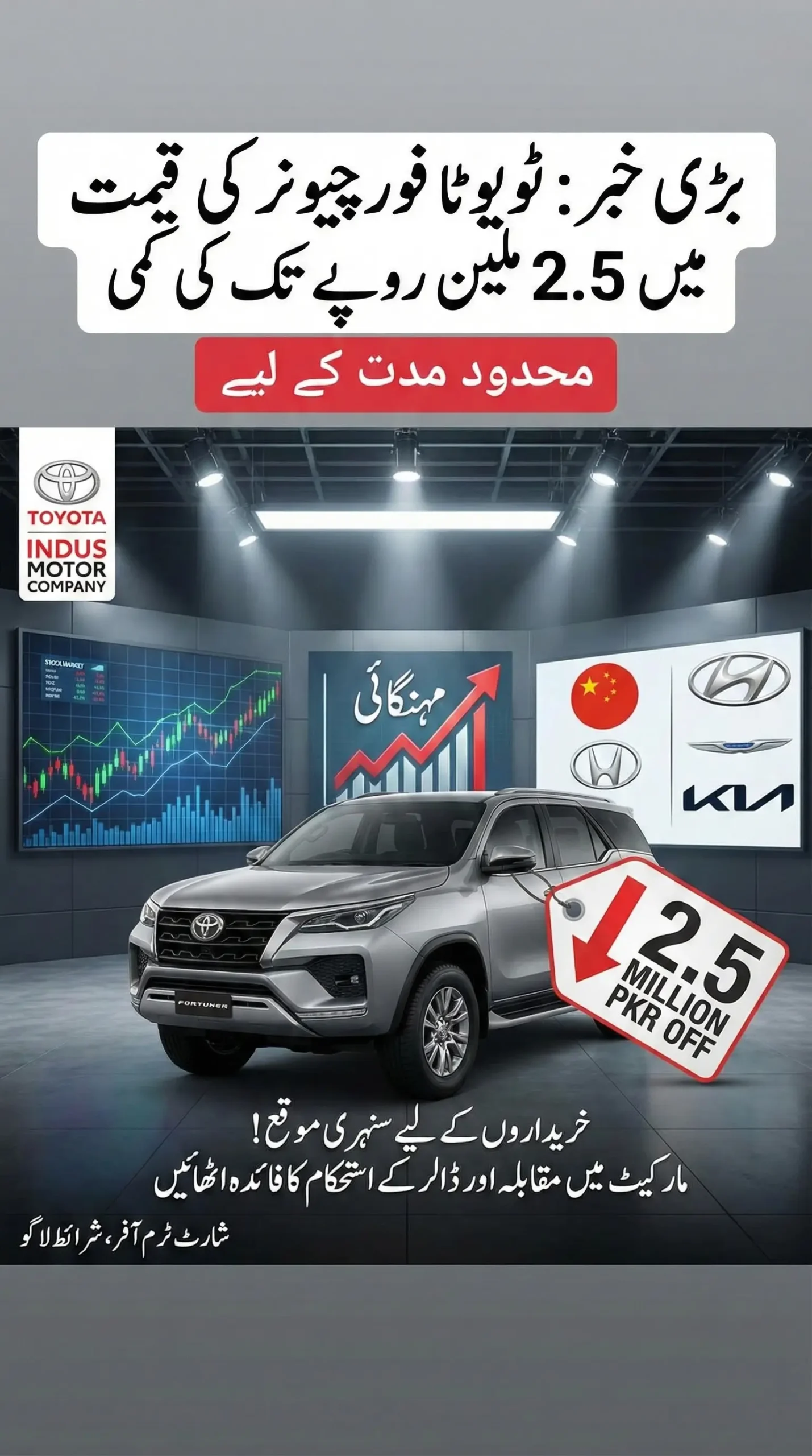 In a surprising move that has once again shaken Pakistan’s SUV market, Toyota reintroduced a huge price reduction of up to Rs 2.5 million on selected Toyota Fortuner variants but only for a limited time.
